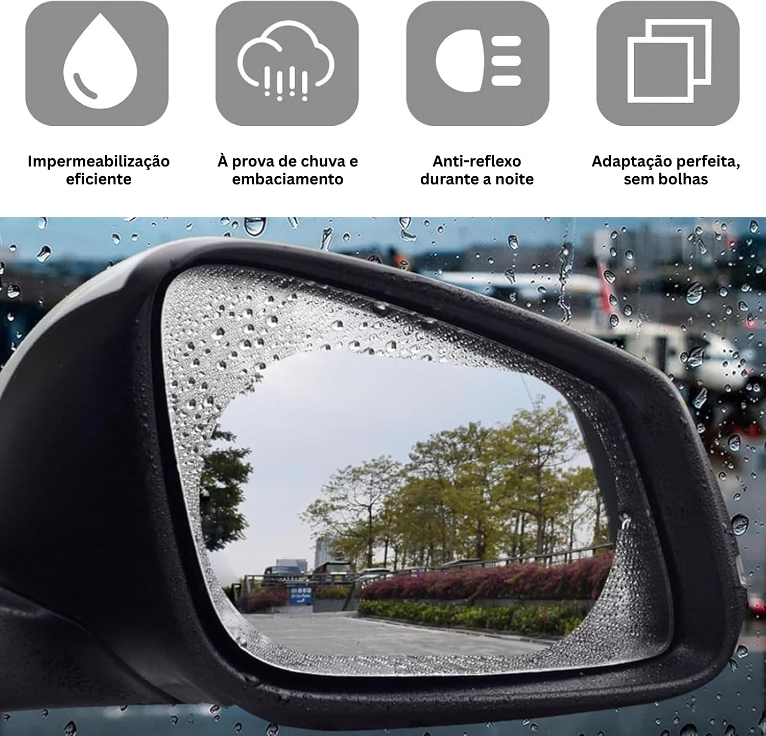 Sim. A película é ideal para espelhos retrovisores, mas também pode ser utilizada noutras superfícies lisas de vidro, desde que estejam limpas e secas antes da aplicação.